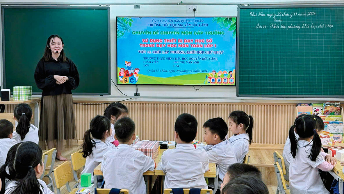 Thực hiện kế hoạch chuyên môn năm học 2024 - 2025, ngày 29/11/2024 Trường Tiểu học Nguyễn Đức Cảnh đã tổ chức thực hiện chuyên đề cấp trường: “Sử dụng thiết bị dạy học số trong dạy học môn Toán lớp 1”. Chuyên đề được minh họa qua tiết học Toán lớp 1, Bài 14: Khối lập phương - Khối hộp chữ nhật. Tiết dạy do cô giáo Bùi Thị Vân Anh và các em HS lớp 1A2 thể hiện.