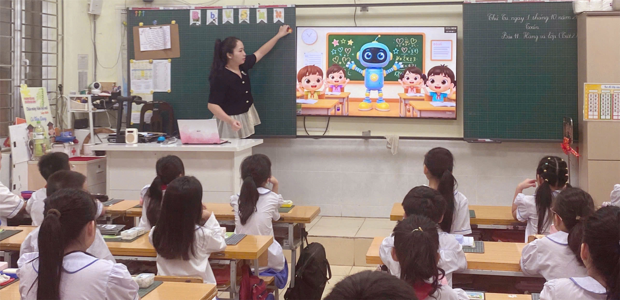 Với sự thống nhất, xây dựng bài giảng của các thầy cô giáo trong tổ chuyên môn, kế hoạch bài dạy được cô giáo chuẩn bị chu đáo, thiết kế bài giảng với việc ứng dụng AI tạo ra hình ảnh sinh động, hấp dẫn, nhiều hoạt động phong phú phù hợp với đối tượng học sinh. Tiết học diễn ra vui vẻ, học sinh hứng thú khi được tham gia thảo luận chia sẻ ý kiến, chơi trò chơi , giúp các em nắm vững kiến thức của bài và vận dụng thực hành tốt.