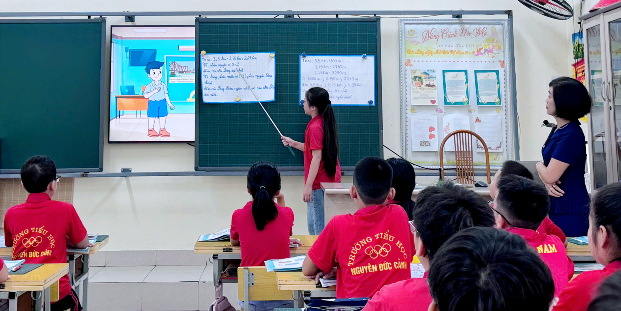 Với tinh thần đổi mới, sáng tạo và tích cực ứng dụng công nghệ thông tin, có áp dụng AI vào xây dựng bài giảng, cô giáo Nguyễn Thúy Hằng đã mang đến một tiết học Toán sinh động, trực quan và thu hút. Thông qua việc ứng dụng AI trong bài giảng, không chỉ giúp học sinh nắm chắc kiến thức mà còn tạo được hứng thú học tập, rèn luyện tư duy logic và phát triển năng lực học tập cho học sinh.