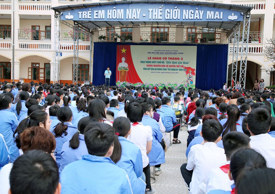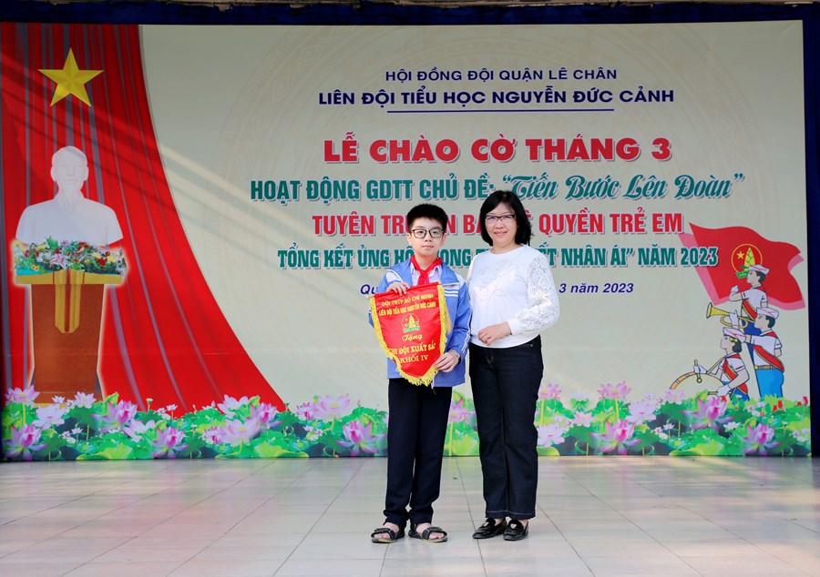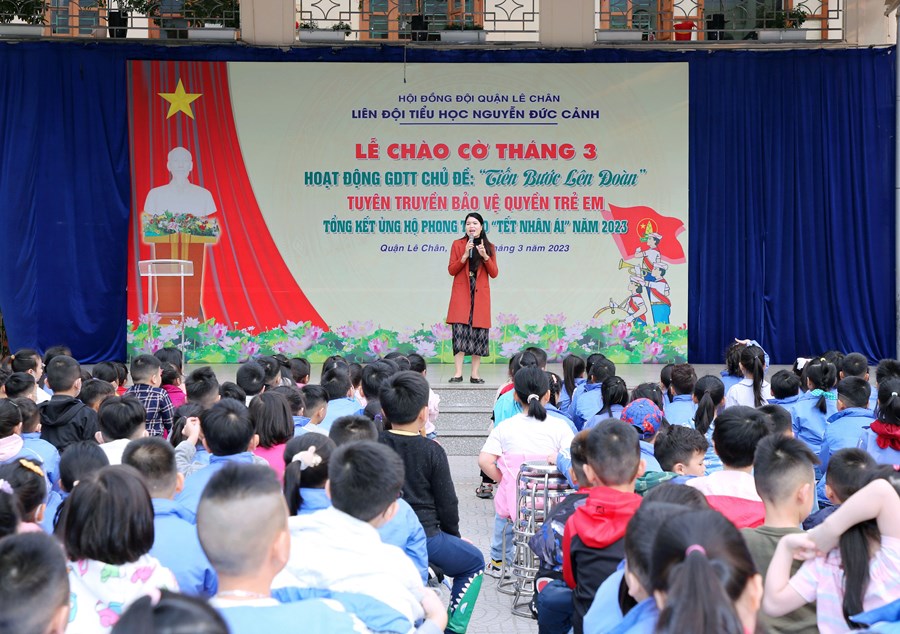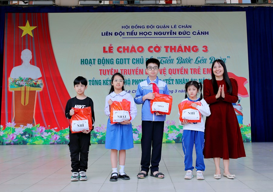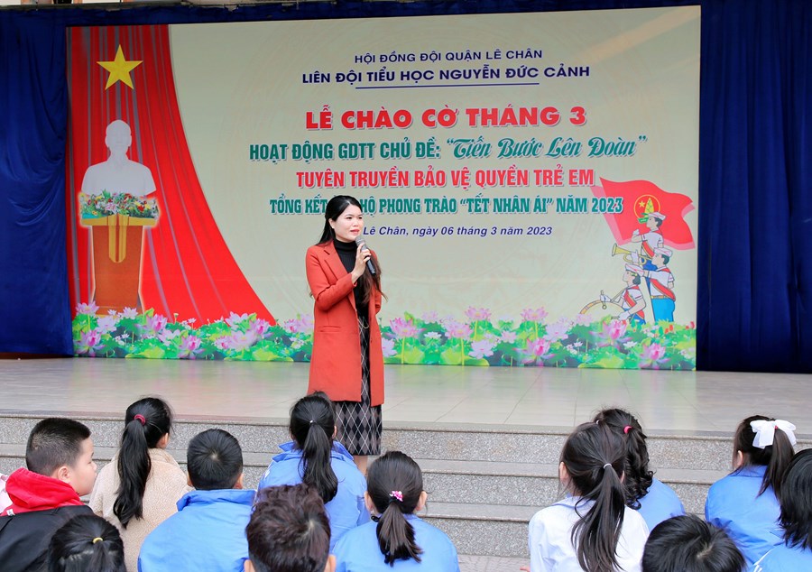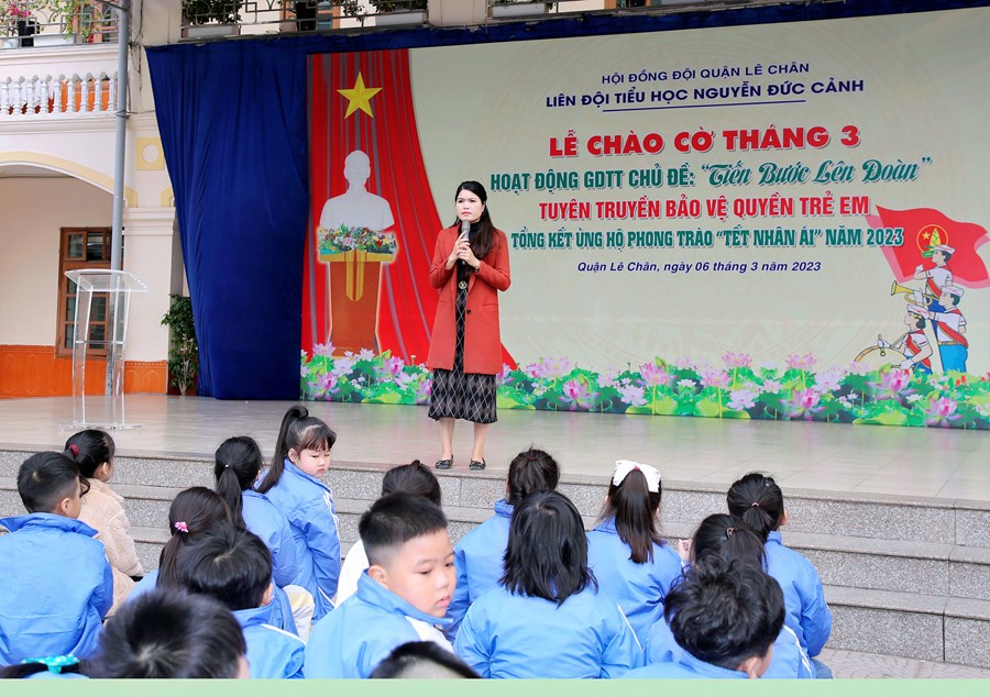 Ngày 06/3/2023, Liên đội Tiểu học Nguyễn Đức Cảnh đã tổ chức Hoạt động giáo dục tập thể tháng 3 với các nội dung: Chủ điểm “Tiến bước lên Đoàn”; Tuyên truyền Quyền bảo vệ trẻ em, phòng tránh xâm hại trẻ em; Tuyên truyền về sức khỏe và dinh dưỡng học đường; Tổng kết tham gia ủng hộ Phong trào “Tết Nhân ái” Xuân Quý Mão năm 2023.