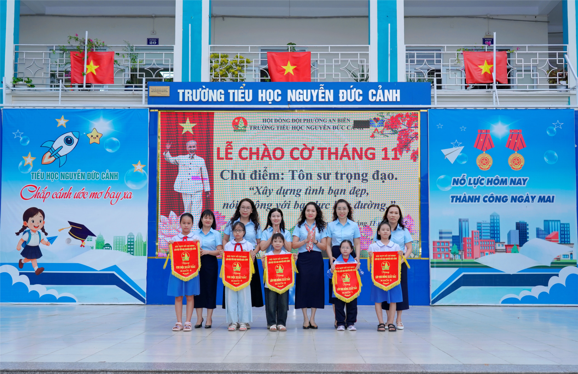 Thực hiện kế hoạch công tác Đội và phong trào Thiếu nhi năm học 2025 - 2026, ngày 10/11/2025 Liên đội TH Nguyễn Đức Cảnh tổ chức Lễ chào cờ và hoạt động Giáo dục tập thể tháng 11.