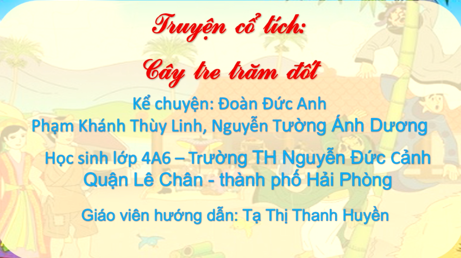 Sách giúp tăng trí tuệ và nâng cao sự hiểu biết của con người. Càng đọc nhiều sách, chúng ta càng mở rộng tầm hiểu biết. Hưởng ứng phong trào tuần lễ đọc sách, kể chuyện theo sách của học sinh Trường Tiểu học Nguyễn Đức Cảnh, chúng ta hãy theo chân các bạn nhỏ lớp 4A6 Trường TH Nguyễn Đức Cảnh để tìm hiểu những điều thú vị trong truyện cổ tích "Cây tre trăm đốt" nhé!.