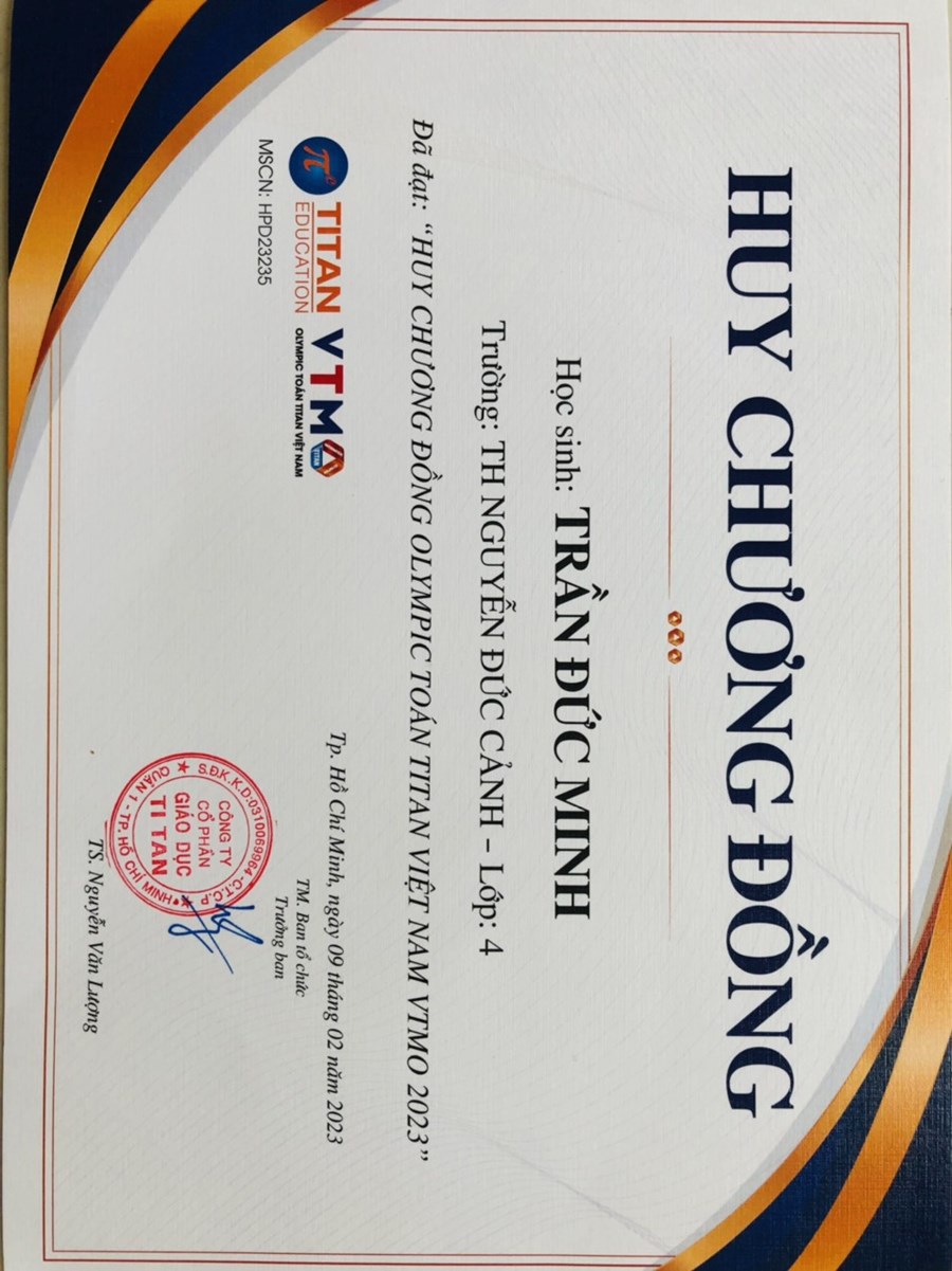 - Huy chương Đồng cuộc thi Olympic Toán TITAN Việt Nam.