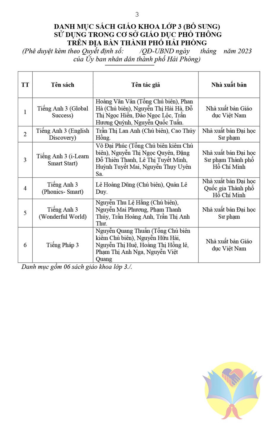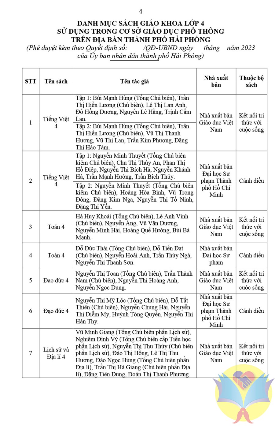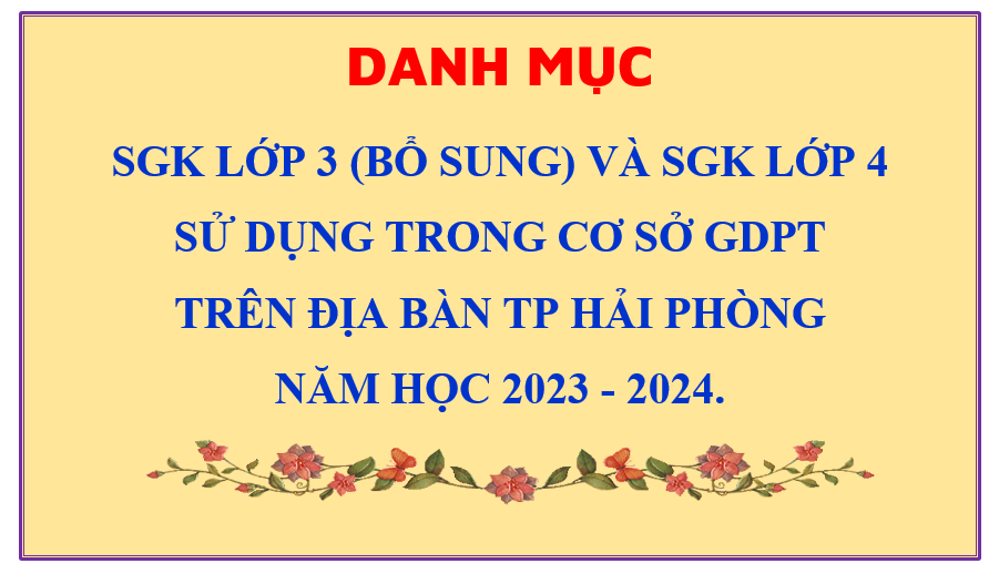 TH.NĐC xin trân trọng trích giới thiệu danh mục sách giáo khoa lớp 3 (bổ sung) và sách giáo khoa lớp 4 sử dụng trong cơ sở giáo dục phổ thông trên địa bàn thành phố Hải Phòng năm học 2023 - 2024.