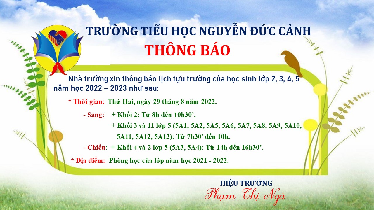 Trường Tiểu học Nguyễn Đức Cảnh xin Thông báo: