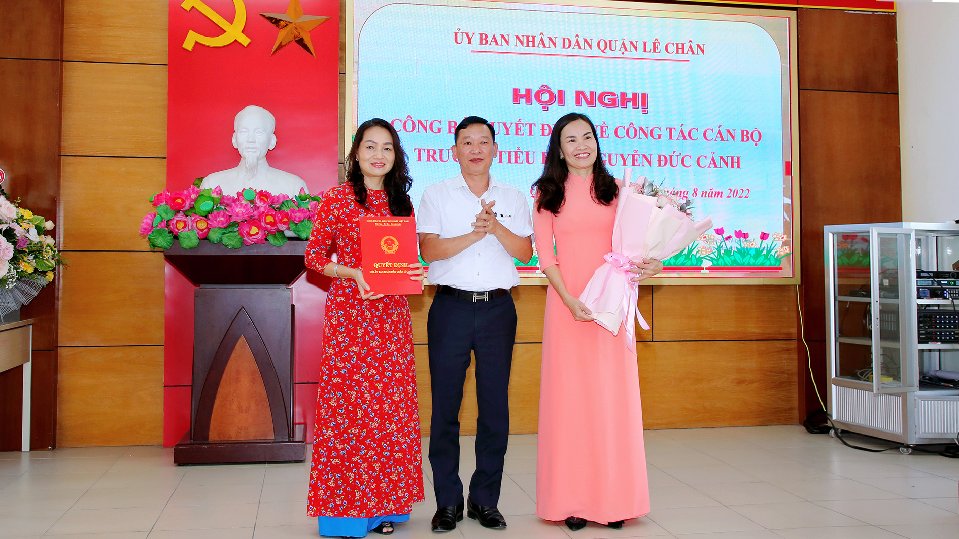 Thực hiện Nghị quyết của Ban Thường vụ Quận ủy về công tác cán bộ trong nhà trường, ngày 08/8/2022 Ủy ban nhân dân quận Lê Chân tổ chức Hội nghị công bố các Quyết định về công tác cán bộ đối với trường Tiểu học Nguyễn Đức Cảnh.