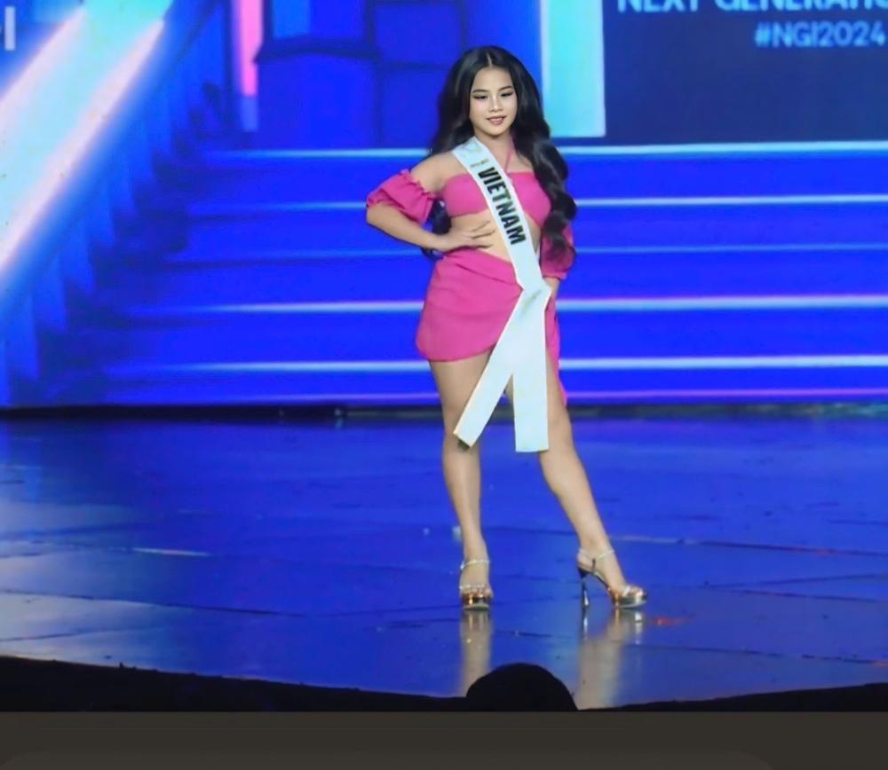 Xuất hiện đầy tự tin, cô gái nhỏ đến từ Việt Nam đã thực sự gây ấn tượng với những đường catwalk chuyên nghiệp, cuốn hút. Đại diện Việt Nam ghi điểm với thần thái rạng rỡ, hô vang tên “Việt Nam” đầy tự hào trên sân khấu cuộc thi Little Miss Icon 2024.
