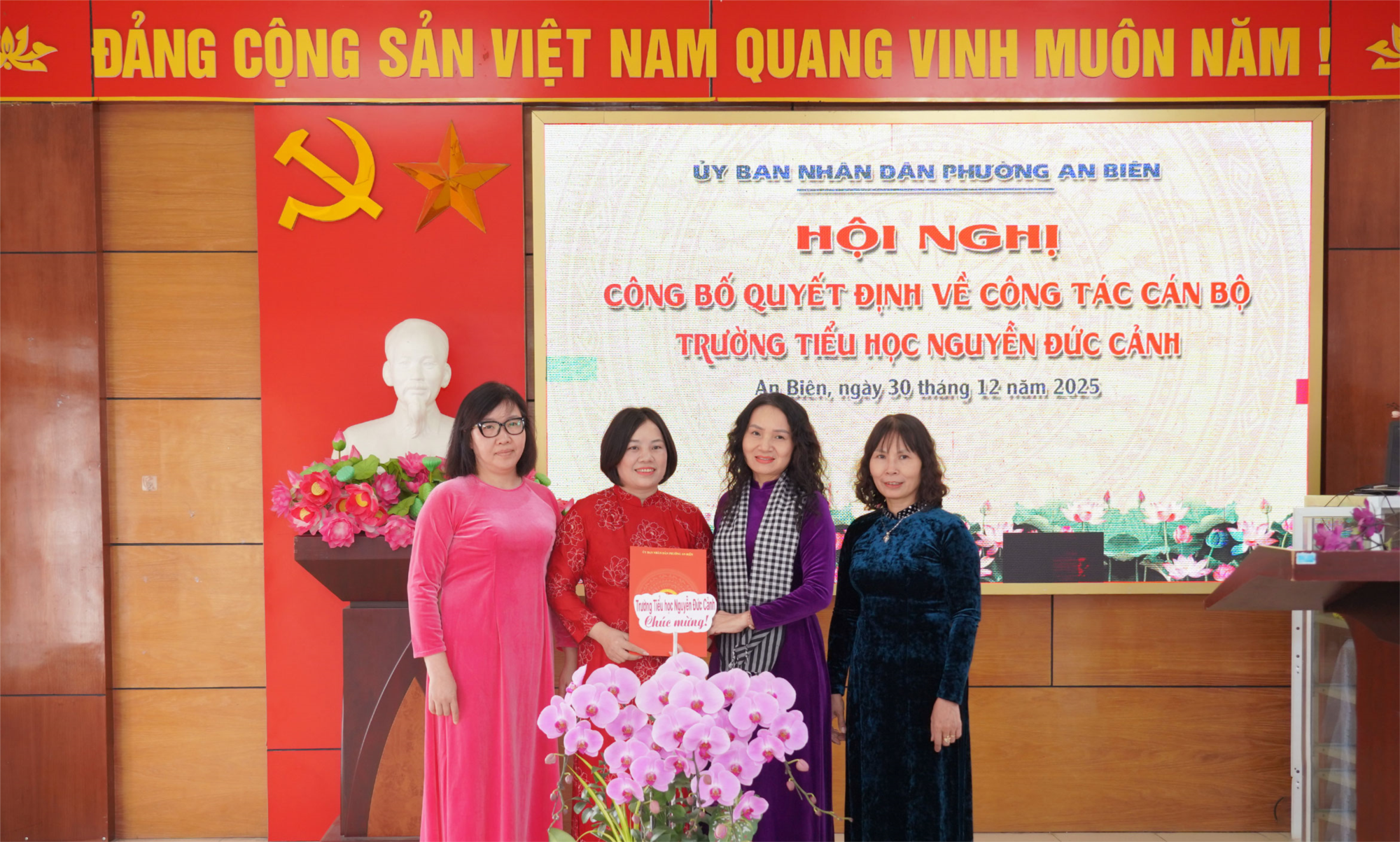 Chiều ngày 30/12/2025 tại Trường Tiểu học Nguyễn Đức Cảnh, UBND phường An Biên đã tổ chức Hội nghị công bố Quyết định về công tác cán bộ Trường Tiểu học Nguyễn Đức Cảnh.