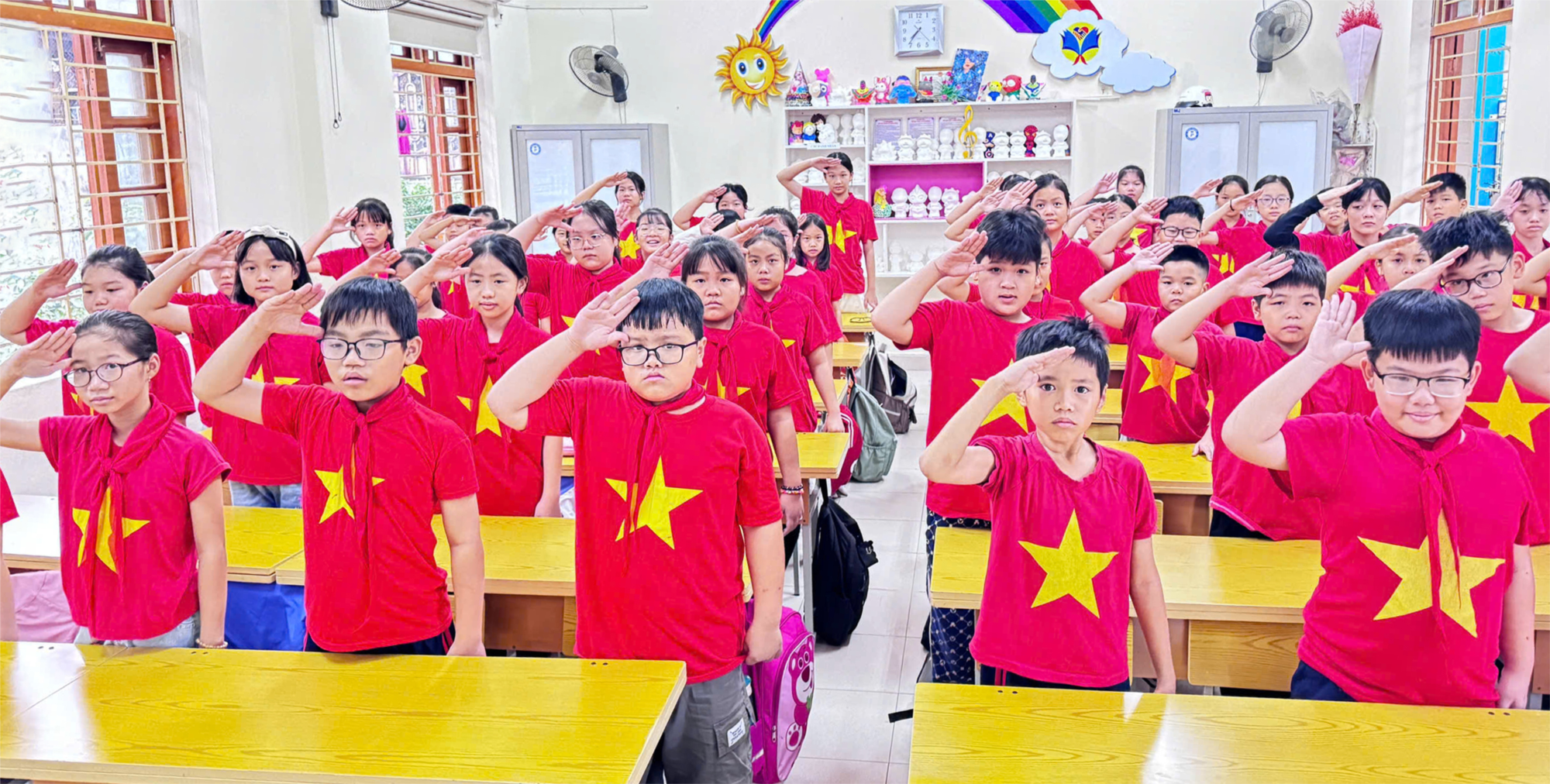 Thực hiện kế hoạch công tác Đội và phong trào Thiếu nhi năm học 2024 - 2025, ngày 04/11/2024 Liên đội TH Nguyễn Đức Cảnh tổ chức Lễ chào cờ và hoạt động Giáo dục tập thể tháng 11 tại các phòng học.