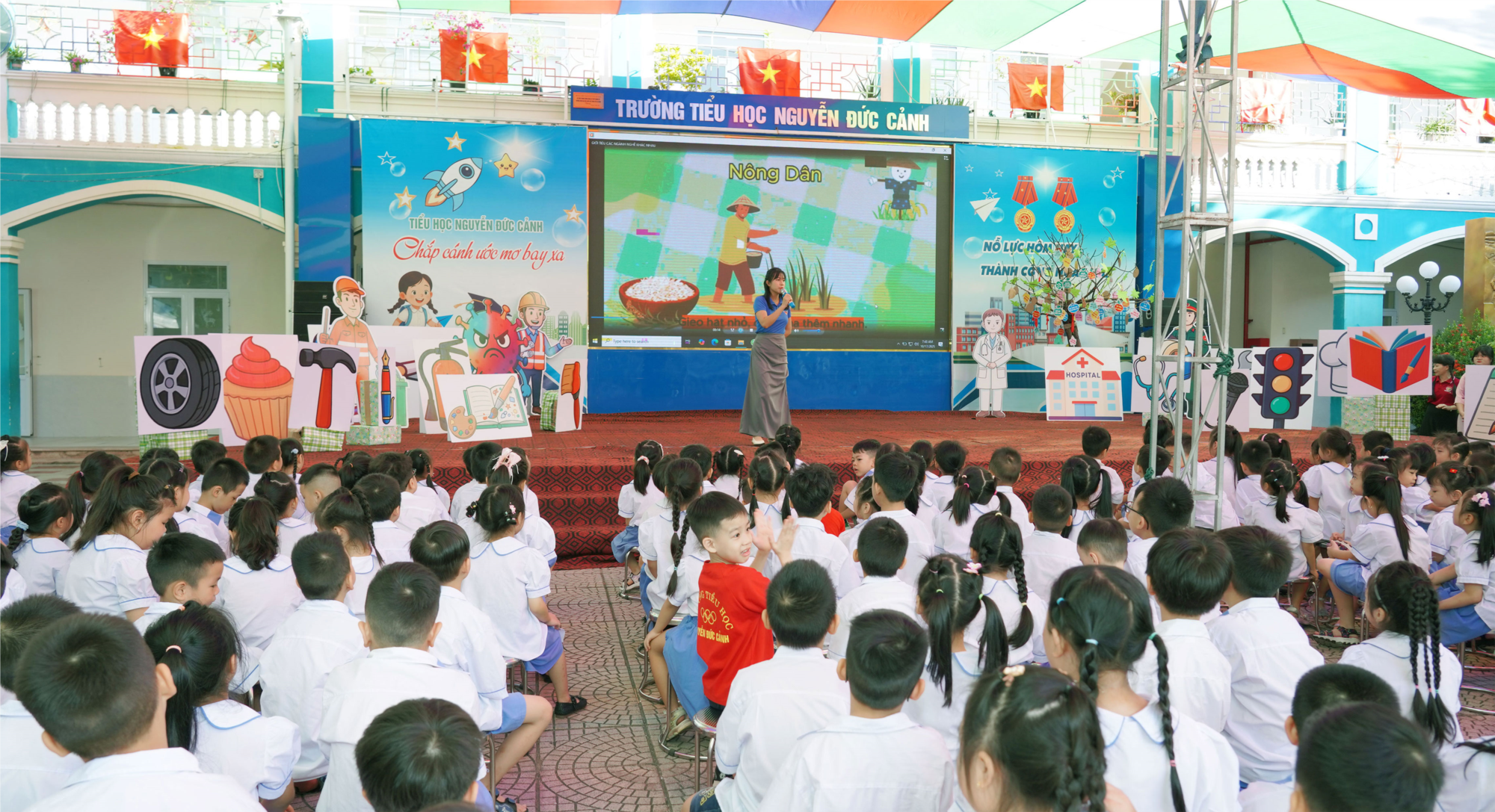 Với mong muốn giúp học sinh hiểu hơn về các ngành nghề trong xã hội, nuôi dưỡng tình yêu lao động, biết trân trọng giá trị của mỗi công việc và hình thành ý thức tự lập, chăm chỉ, biết ơn, trong 2 ngày 15-16/10 Trường Tiểu học Nguyễn Đức Cảnh phối hợp với Trung tâm Kỹ năng sống Phương Mai tổ chức Ngày hội trải nghiệm nghề nghiệp “Mỗi nghề - Một giá trị”.