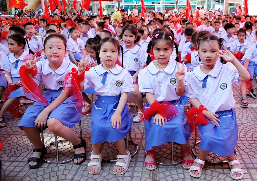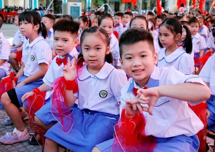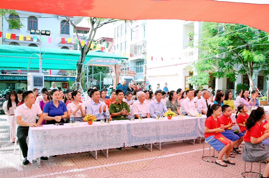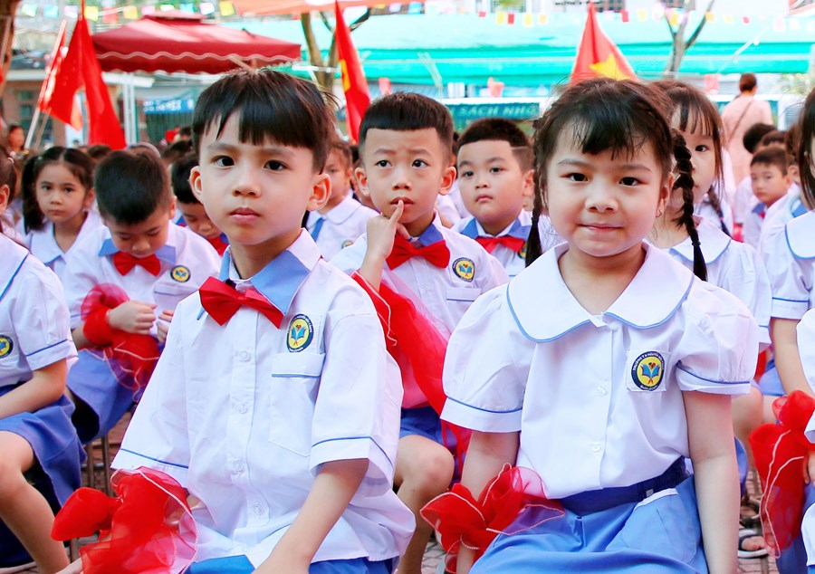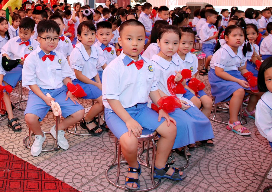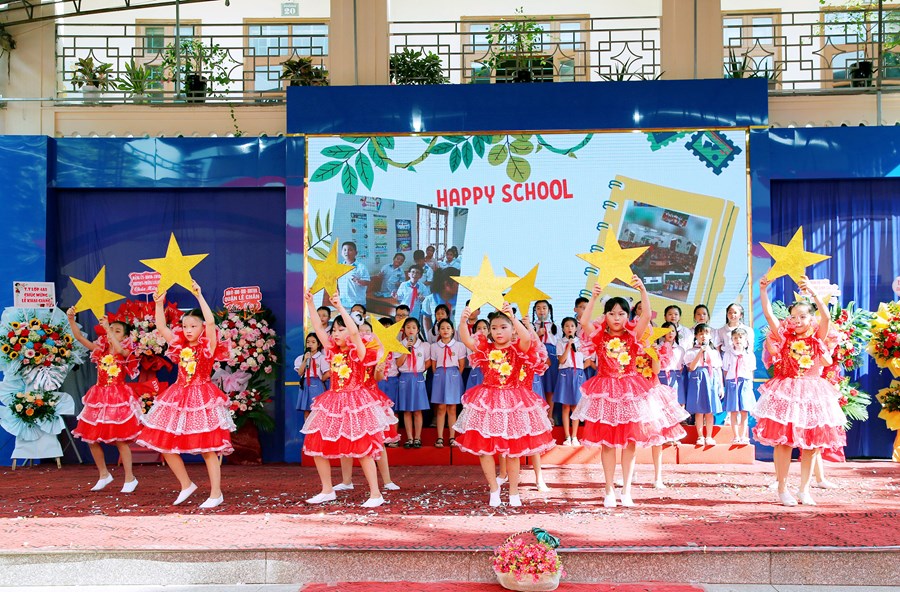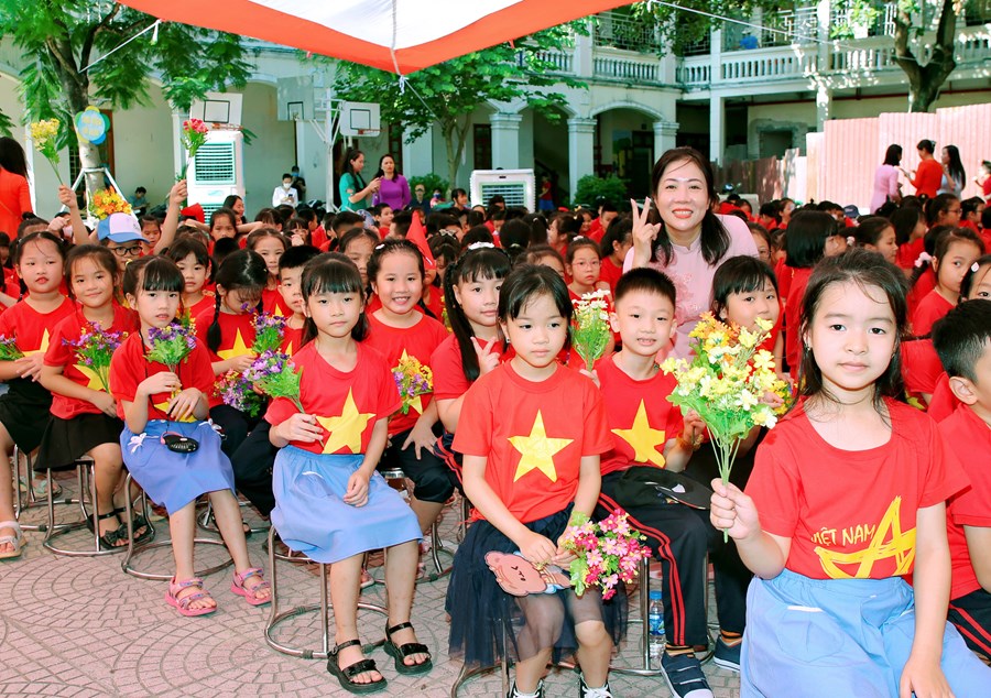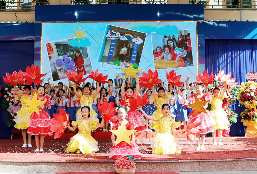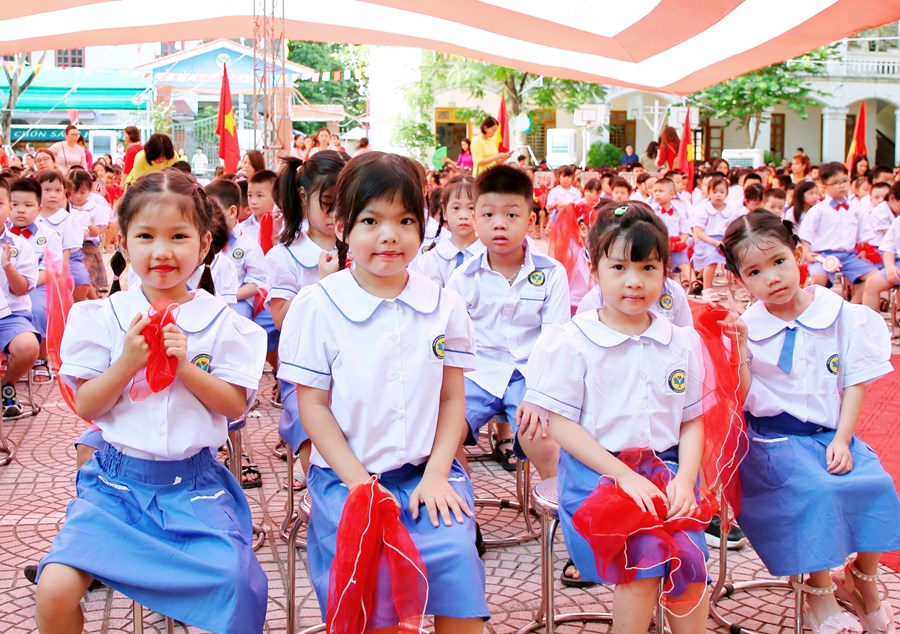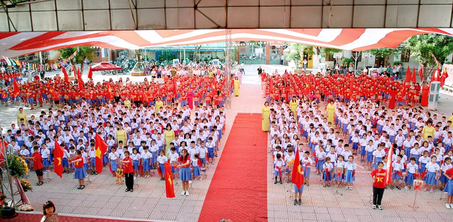 Ngay từ sáng sớm, sân trường đã rực rỡ cờ hoa và đông vui, nhộn nhịp. Trong tiếng nhạc của những bài hát chào mừng năm học mới, đông đảo giáo viên, học sinh, và phụ huynh đã có mặt ở trường để chuẩn bị cho lễ khai giảng. Những cô bé, cậu bé lớp 1 dù còn bỡ ngỡ khi lần đầu tiên được dự Lễ Khai giảng ở ngôi trường mới nhưng đã tự tin hơn trong sự cổ vũ, ánh mắt trìu mến yêu thương của các anh chị đi trước và cô giáo chủ nhiệm.